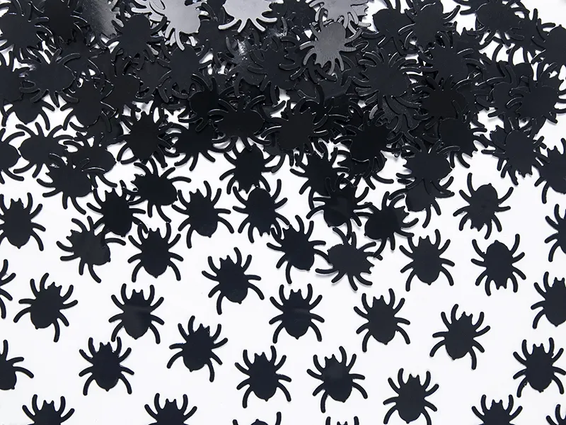 Sort konfetti med edderkoppeformer – ca. 1,2 × 1,2 cm i størrelse – fylder 15 gram per pose. Materialet er let og skinnende sort plast, der fanger lyset med et diskret glimt, perfekt som pynt på borde, i dekorationer eller som overraskende indslag over invitationer og kuverter. Bland det med blade eller konfetti i efterårsfarver for en dramatisk Halloween-stemning, eller drys det omkring dessertsamlinger for at skabe en mystisk atmosfære. Edderkopperne er små nok til diskret effekt, men store nok til at vække opmærksomhed – god holdbarhed og velegnet til flere års forbrug. Den mørke tone gør dem til et must for dem, der drømmer om gotisk elegance i festens rammer.