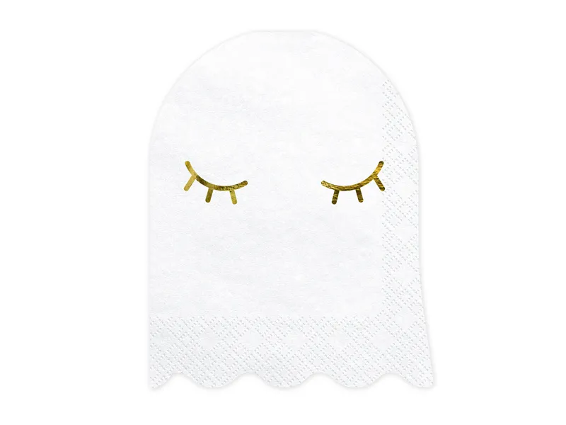Servietterne “Ghost” er perfekte til temafesten eller Halloween-bordet, med deres stilrene kombination af hvid baggrund og detaljer i metallisk guld. Når de er foldet, måler de cirka 11 × 14 cm, og når de foldes ud, vokser de til omkring 22,5 × 28 cm – ideelt til både festlige snack-serveringer og som dekorativt element mellem tallerkenerne. Der er 20 stk. pr. pakke, hvilket giver rig mulighed for ensartet borddækning uden at gå på kompromis med stilen. Blødt papir gør dem nemme at folde og placere, samtidig med at de leverer et elegant præg på festen. Et enkelt blikfang, men alle detaljer spiller sammen for en stemningsfuld oplevelse.