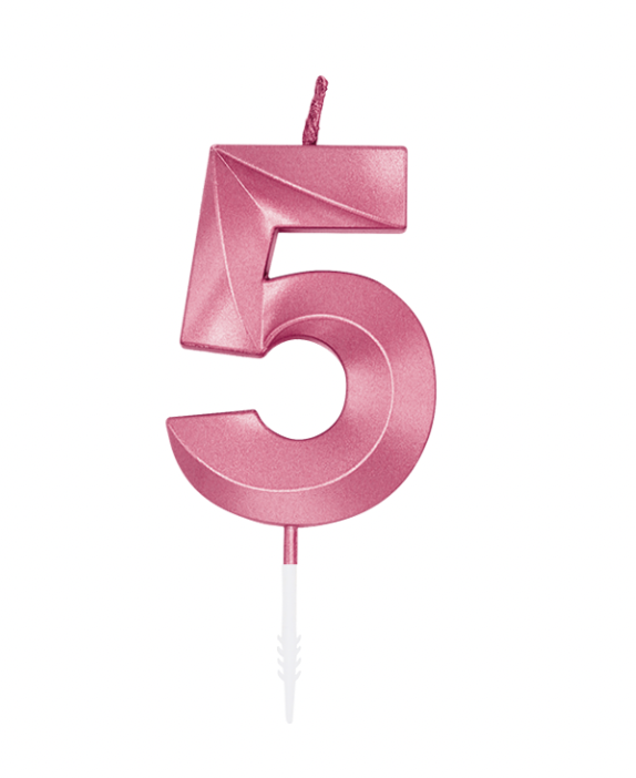Kagelys Metallic Lyserød Tal 5 - 6cm