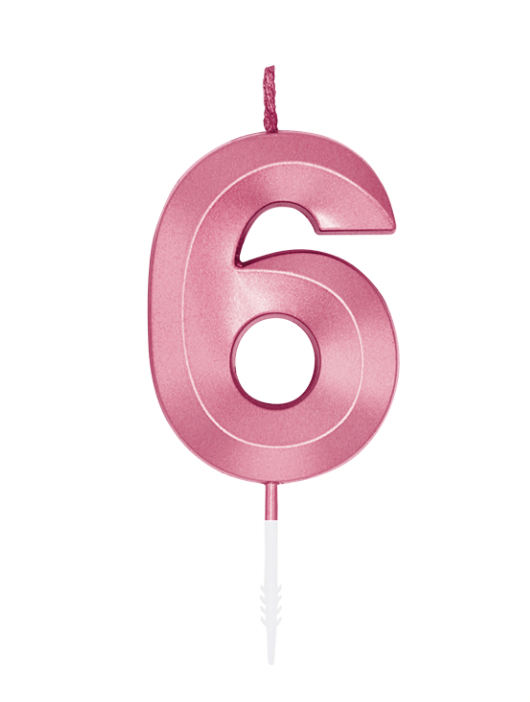 Kagelys Metallic Lyserød Tal 6 - 6cm