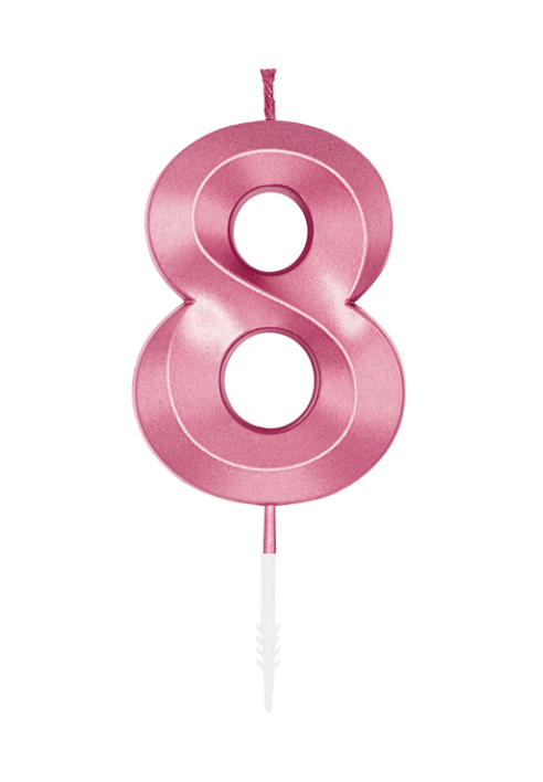 Kagelys Metallic Lyserød Tal 8 - 6cm
