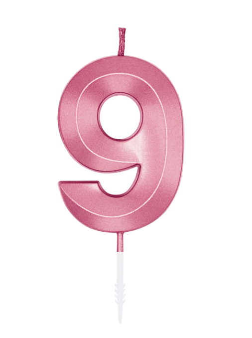 Kagelys Metallic Lyserød Tal 9 - 6cm
