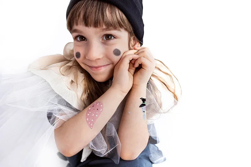 Disse Halloween-midlertidige tatoveringer giver sjov og uhyggelig pynt til festlige øjeblikke. Sættet indeholder 20 forskellige designs, alle unikke motiver med gotiske, grønne, orange og sorte detaljer – ideelle til børn og voksne. Tatoveringerne er lette at påføre: blot brug lidt vand, påfør etiketten på huden, tryk og fjern arket efter kort tid. De holder et par dage, afhængigt af hudtype og placering – og kan nemt fjernes med varmt vand og sæbe. Perfekte til Halloween-temaer, kostumefester, trick-or-treating eller bare til at spice hverdagen op med en dramatisk detalje. Bland motiverne, mix farverne og lad fantasien flyde med disse festlige midlertidige tatoveringer.