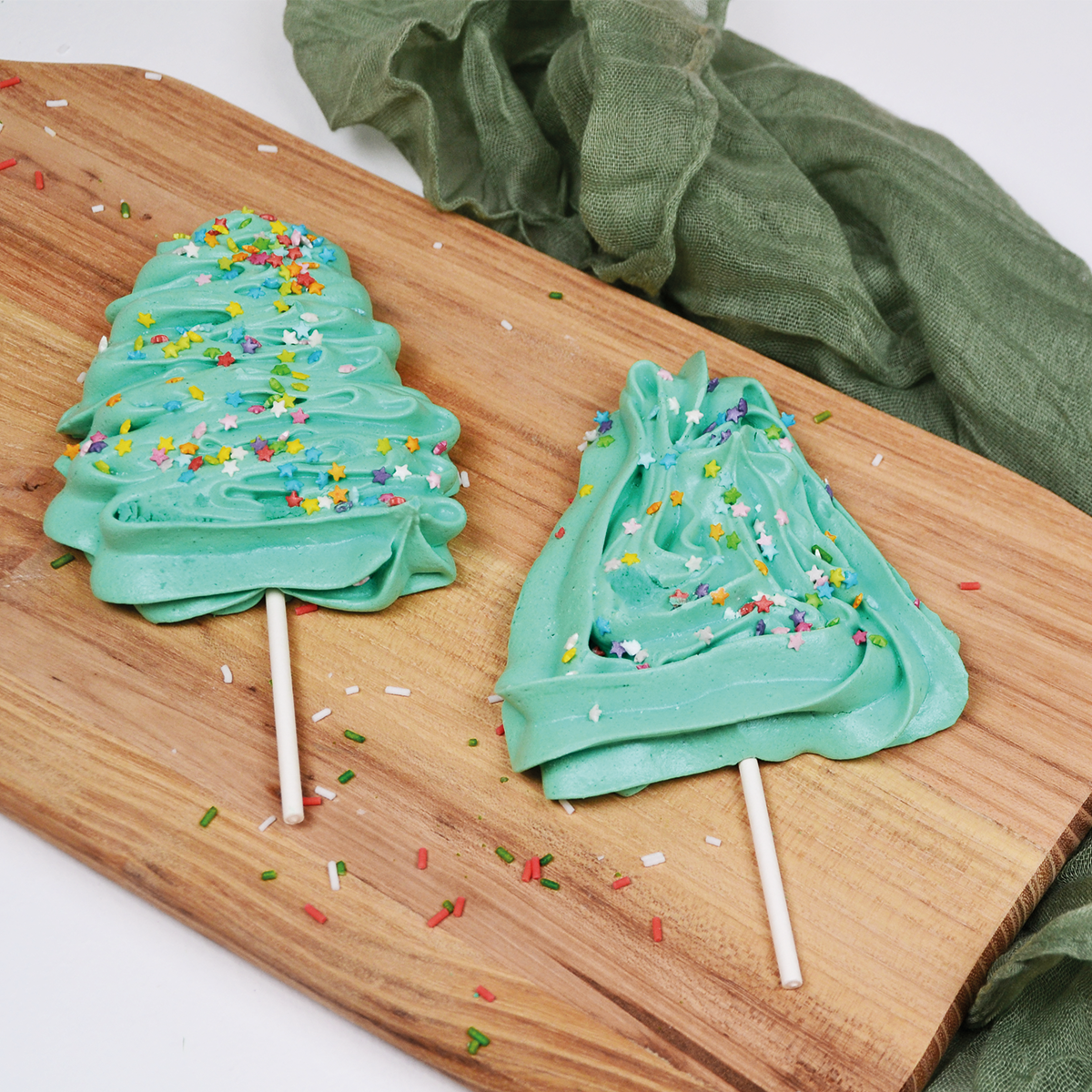 Sæt julestemningen i gang med vores “Lav-selv marengs-kit – juletræ på pind (30 stk)”.