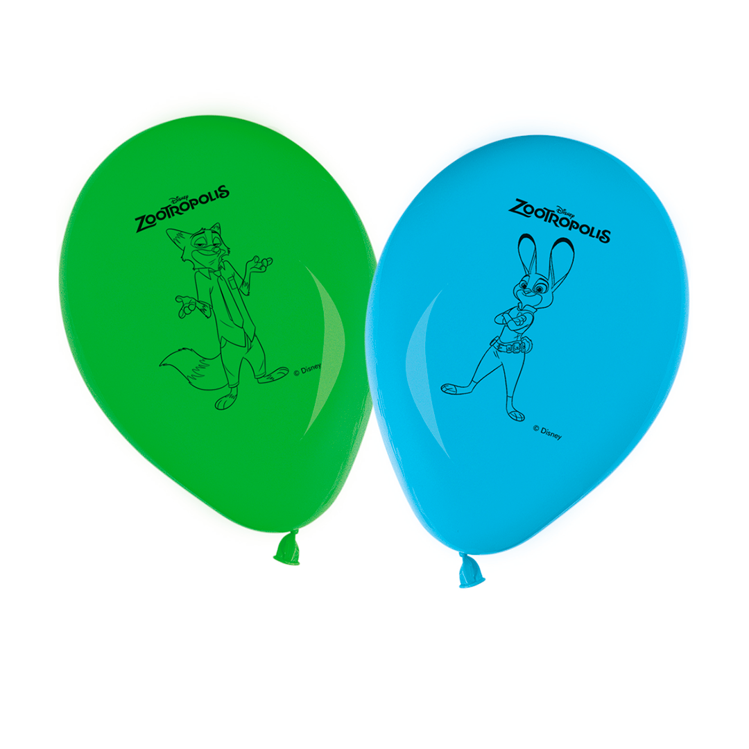 8 × 11 inches Printed Balloons – Zootropolis er et sæt festballoner med motiver fra den populære animationsfilm, ideelt til børnefødselsdage og temafester.